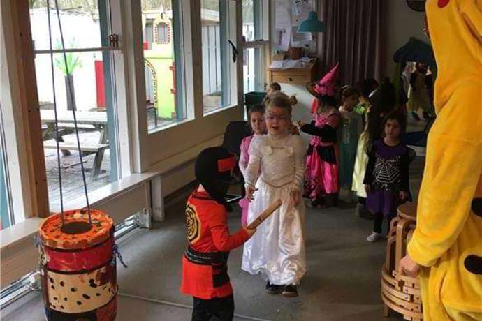Om fredagen holder vi festlig fredag med fælles samling på tværs af hele institutionen. Vi synger og danser og ønsker hinanden en god weekend.