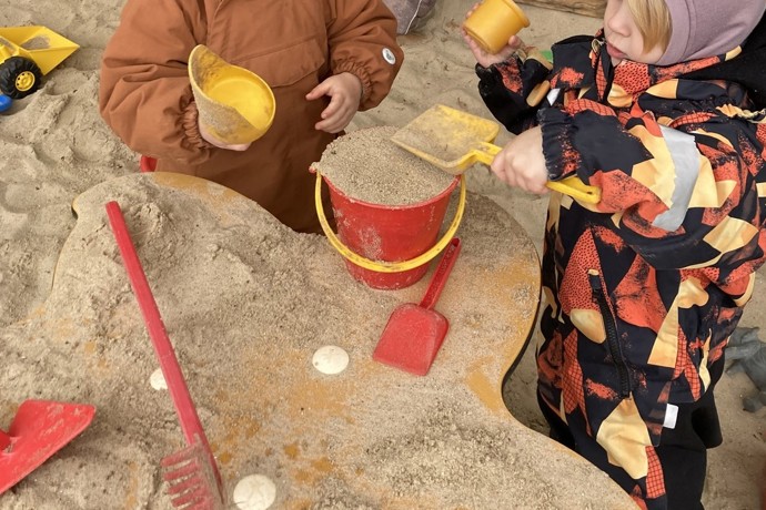 - Kl. 9.30-10.20 er vi på legepladsen, på ture eller har pædagogiske aktiviteter på stuen. Vi inddeler ofte børnene i mindre grupper, hvor vi kan have fokus på sprog, motorik eller sociale relationer.